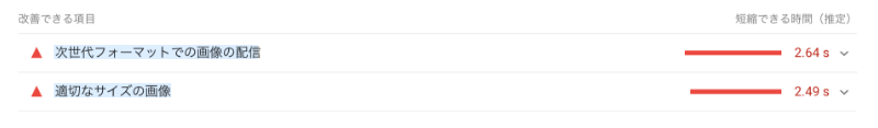 改善できる項目に「適切なサイズの画像」や「次世代フォーマットでの画像の配信」と表示される場合に以下の内容を実施します。